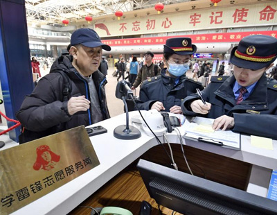 1月27日,务工人员排队进站乘车。