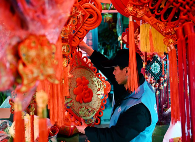 1月27日,务工人员带着行李排队进站。