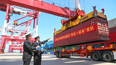 4月12日,在江西南昌县泾口乡育秧基地,工作人员将即将移栽大田的秧盘装车。