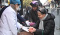 1月7日,市民在杭州河坊街排队领取腊八粥。