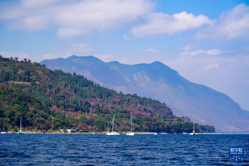 时值冬日,位于云南省玉溪市境内的抚仙湖风景秀丽,吸引不少游客前来休闲游玩。