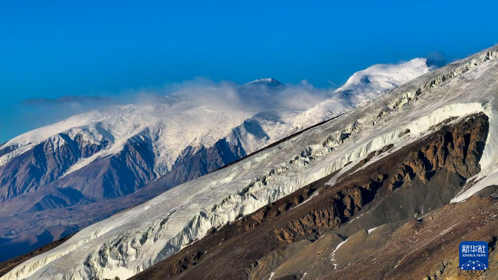 这是在新疆塔什库尔干塔吉克自治县慕士塔格冰川公园拍摄的慕士塔格峰和冰川(1月12日摄,无人机照片)。