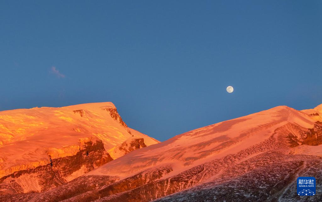 这是夕阳下慕士塔格峰周边的昆仑山脉(1月12日摄,无人机照片)。