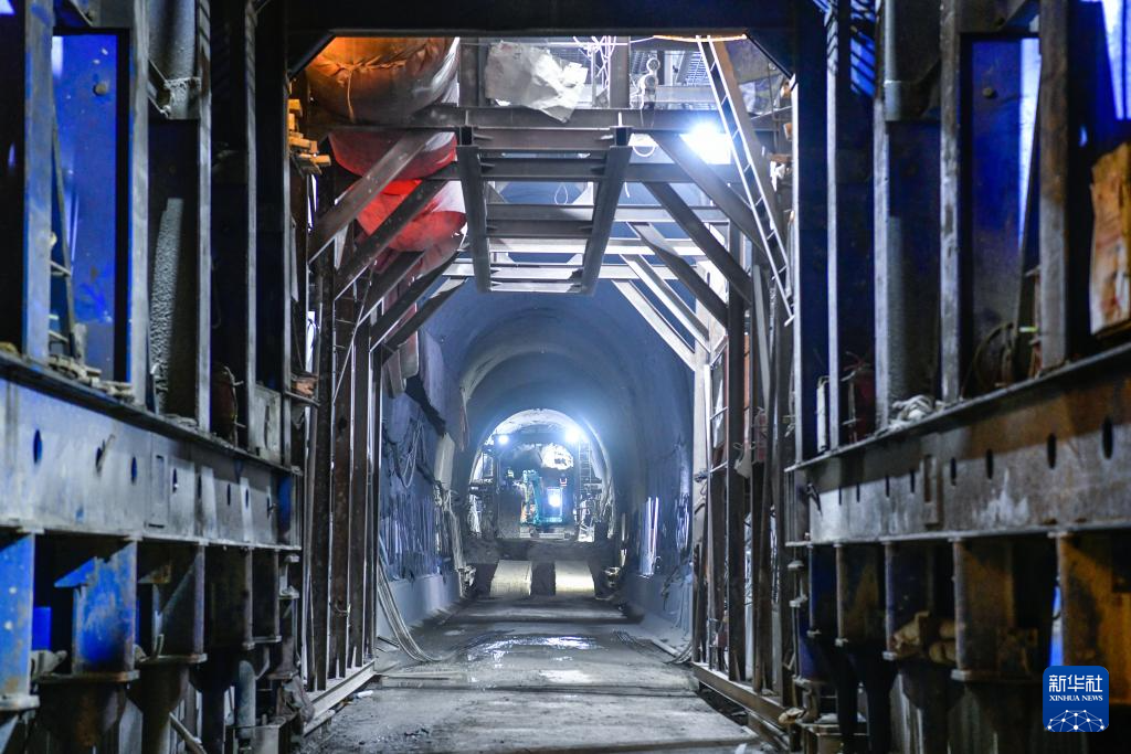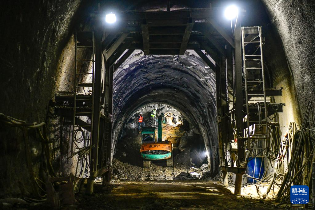 1月16日,工人驾驶挖掘机在贵州瓮马铁路南延伸线五七连隧道里施工。