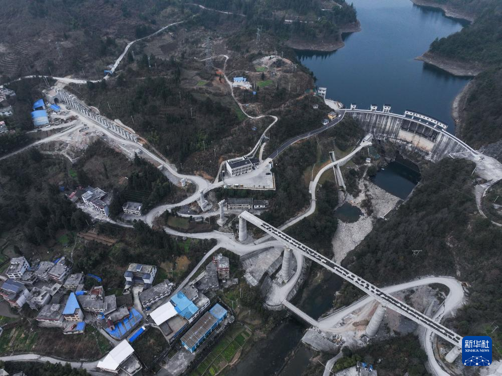 这是1月16日拍摄的贵州瓮马铁路南延伸线谷江河大桥施工场景(无人机照片)。