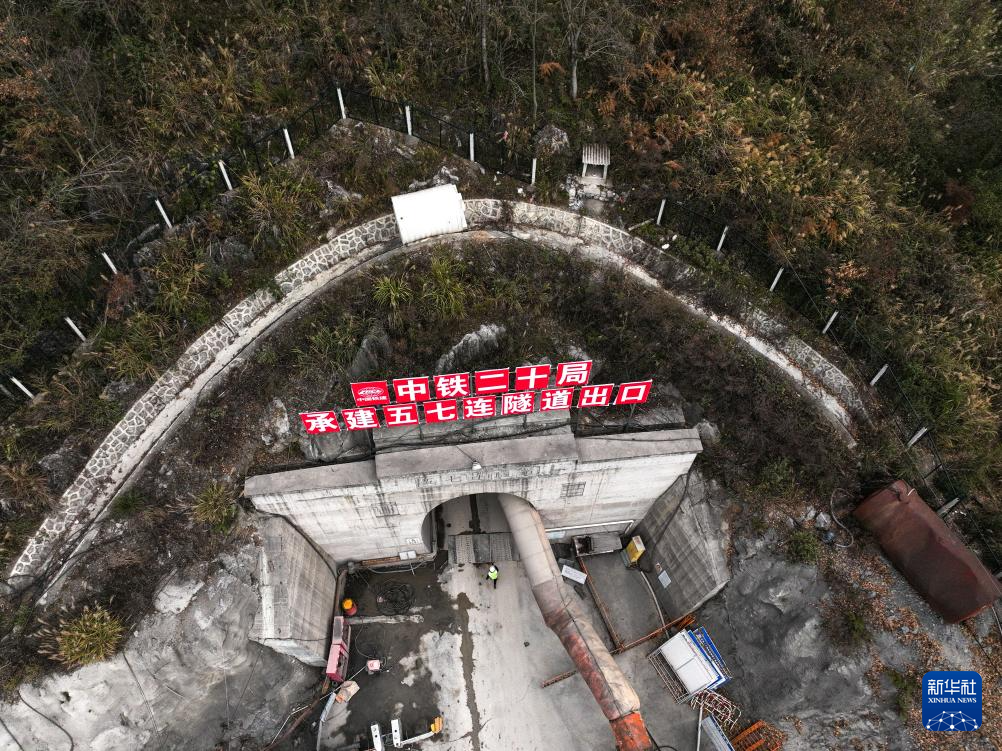 这是1月16日拍摄的贵州瓮马铁路南延伸线五七连隧道出口(无人机照片)。