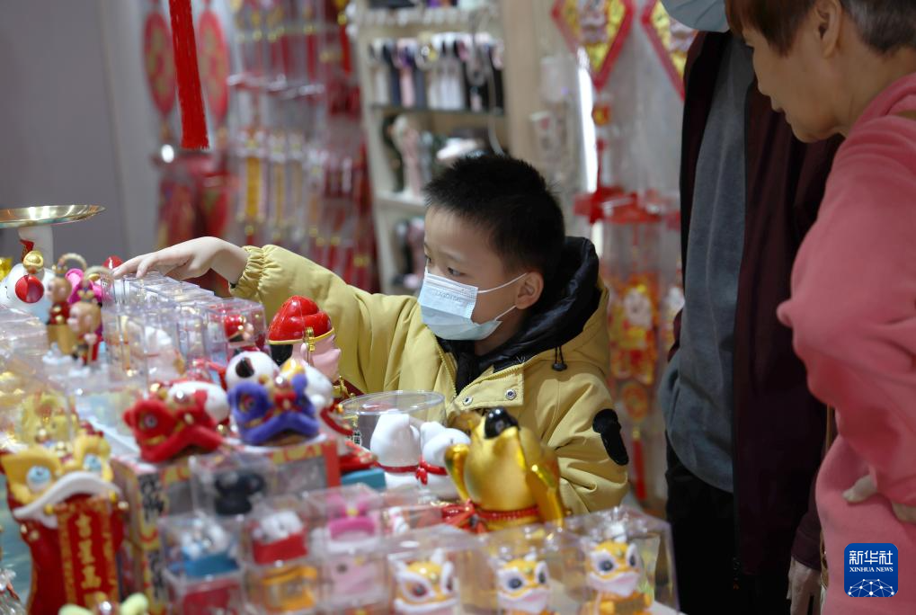1月20日,小朋友在广州市一德路市场选购春节饰品。
