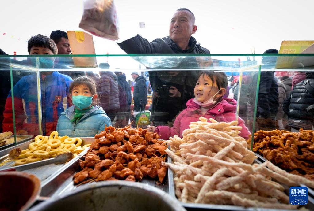 1月21日,人们在金贵集贸市场选购小吃。