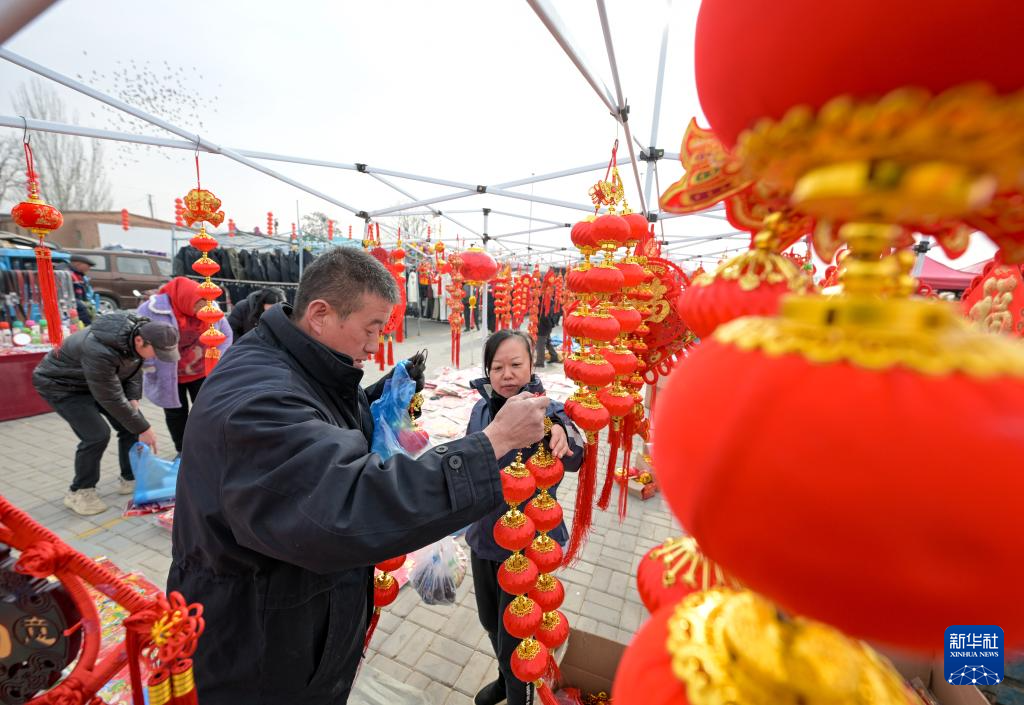 1月21日,人们在金贵集贸市场选购春节饰品。