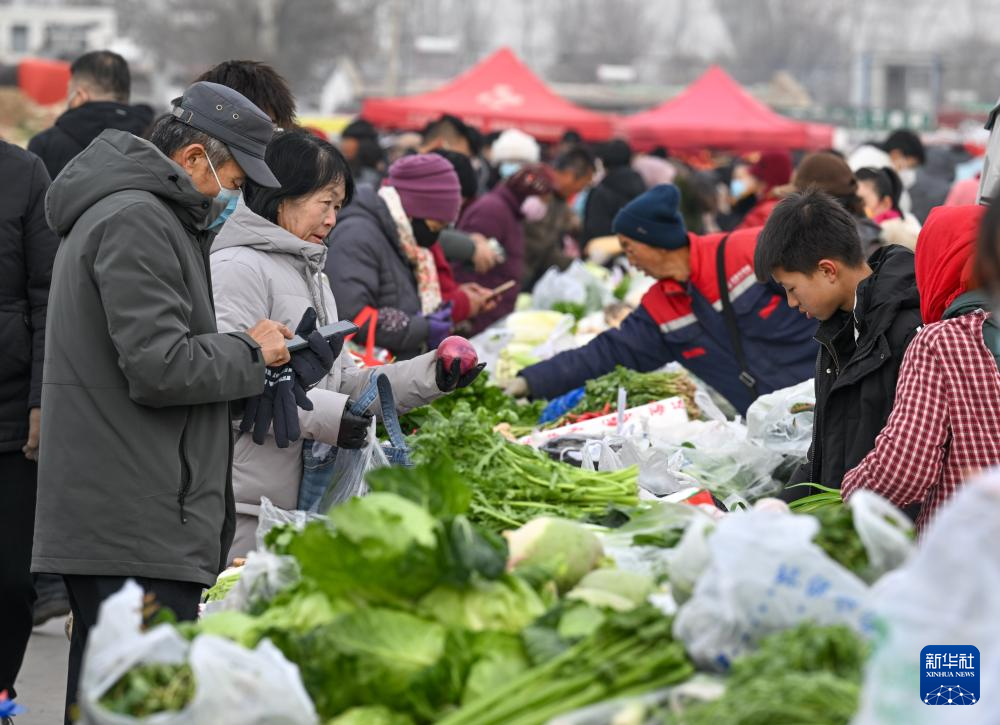 1月21日,人们在金贵集贸市场选购蔬菜。