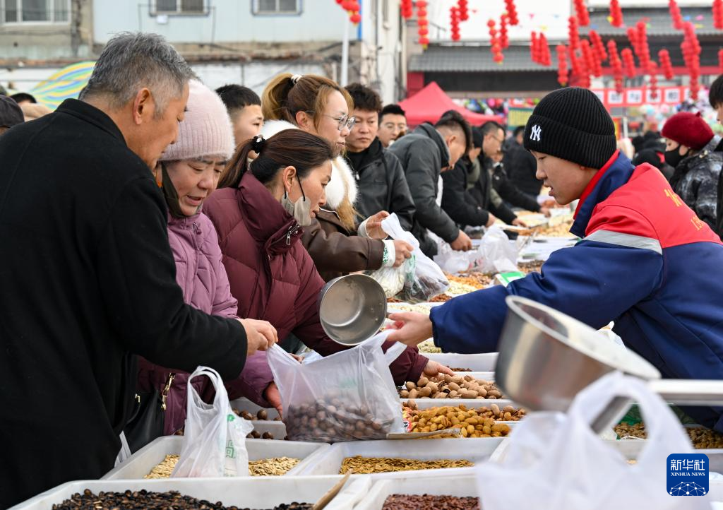 1月21日,人们在金贵集贸市场选购干果。