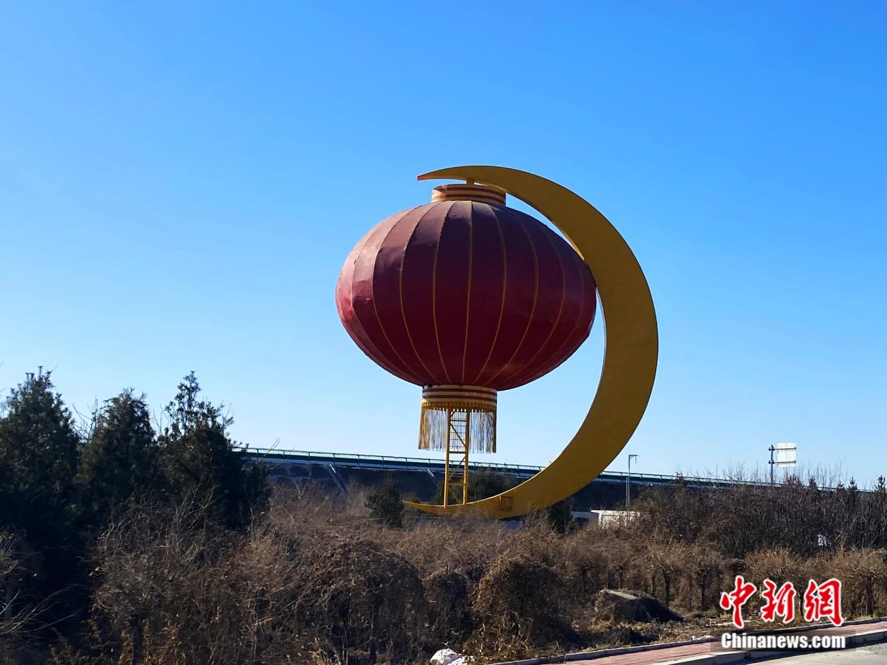 屯头村村头的巨型宫灯雕塑。李玉素 摄