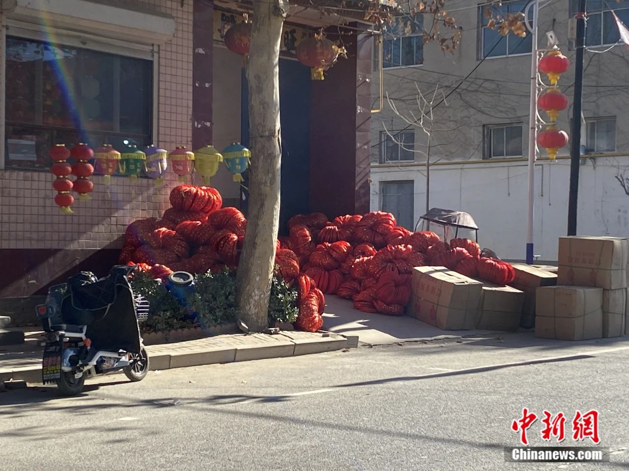 大街上摆放的灯笼配件更是随处可见,