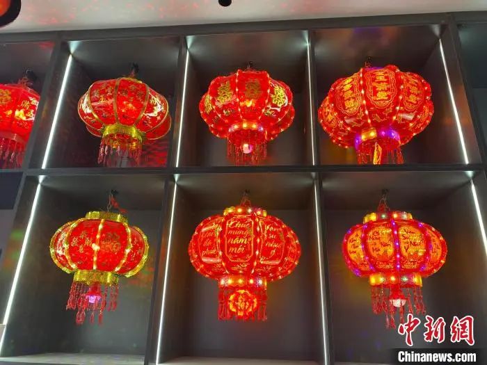 当地一家灯笼厂展示的主要用于出口越南的七彩转灯。李玉素摄