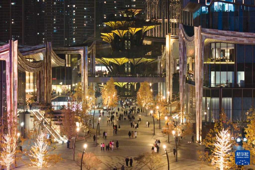 市民游客在西安万象城游览购物(1月23日摄,无人机照片)。