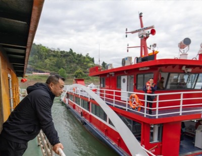 1月29日,在位于北京中轴线上的前门大街,游客乘坐“铛铛车”观光游览。