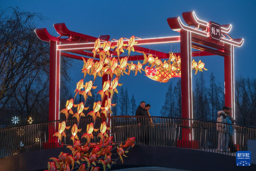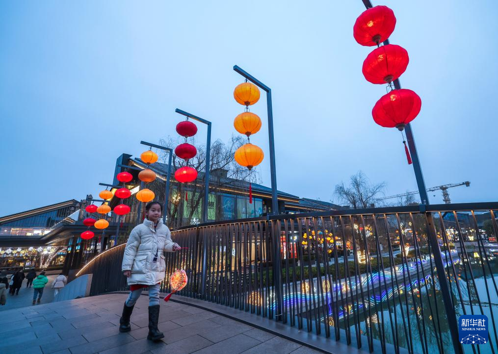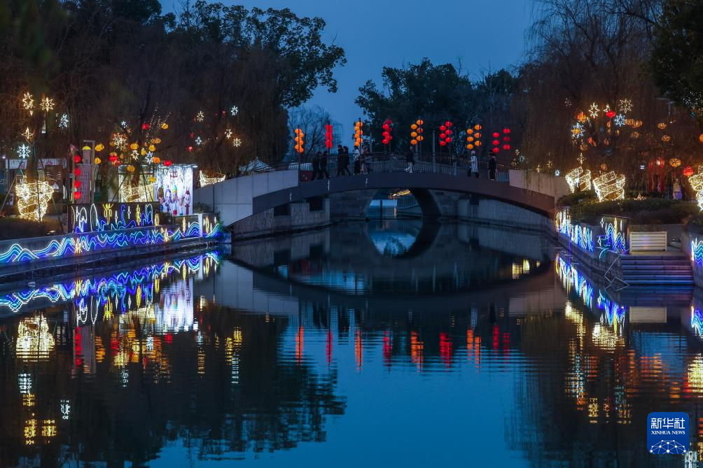 临近元宵节,浙江省嘉兴市南湖区的街道社区、商业区块、城市公园被各色花灯点亮,营造出浓浓的节日气氛。
