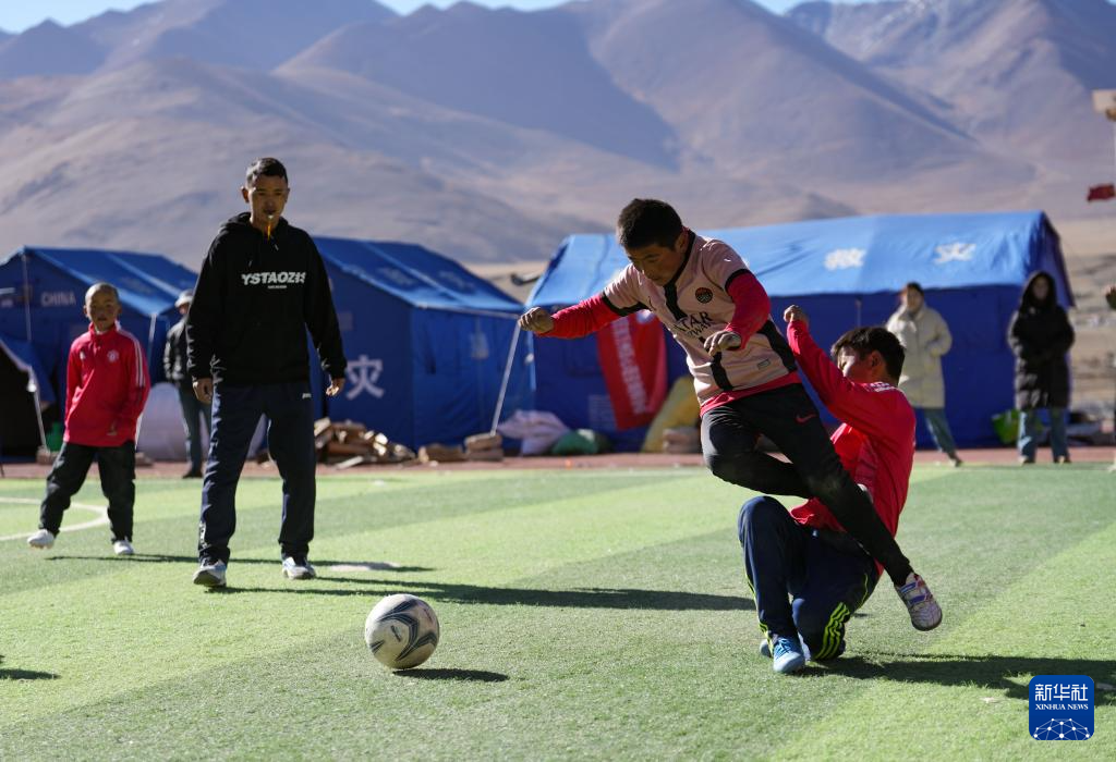1月26日,在定日县曲洛乡完全小学操场上,长所乡嘎旦村和曲洛乡措昂村的孩子们在进行足球比赛。
