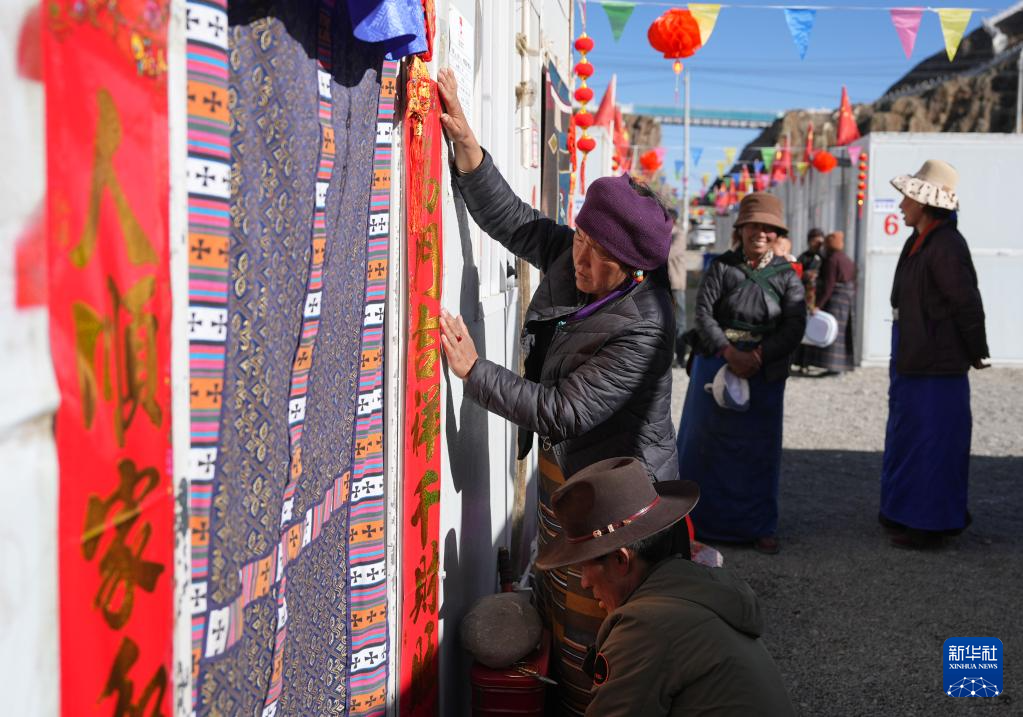 1月26日,拉孜县吉如村安置点群众在张贴春联。