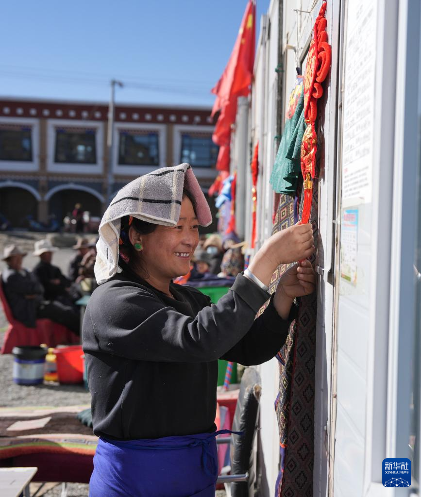 1月26日,拉孜县吉如村安置点群众在挂吉祥结。