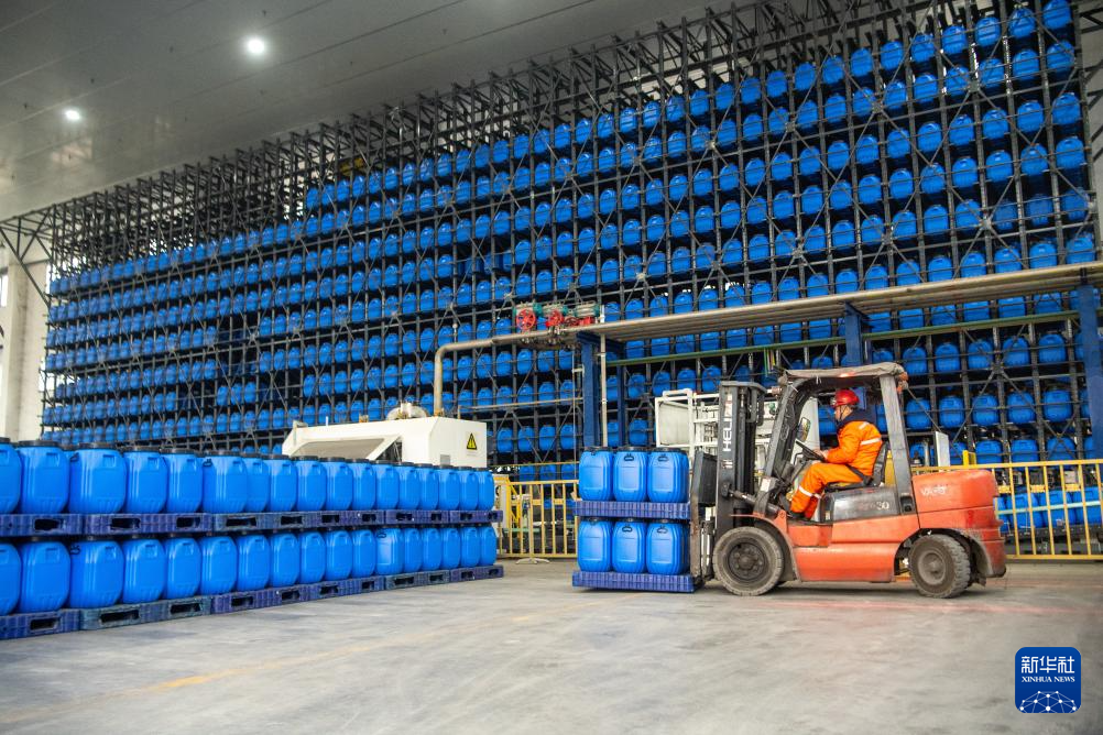 2月11日,在重庆市长寿区的中国石化川维化工VAE(醋酸乙烯-乙烯共聚乳液)项目,工作人员在转运产品。