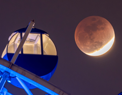 这是2月12日在哈尔滨冰雪大世界拍摄的月亮。