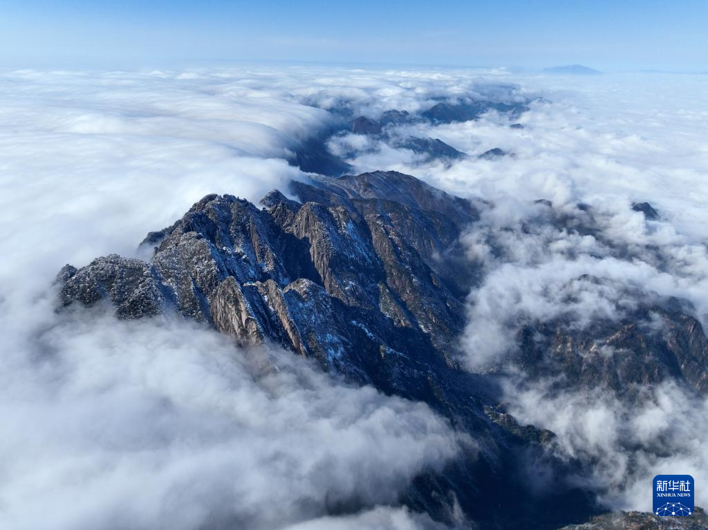 2月18日拍摄的安徽黄山风景区景色(无人机照片)。