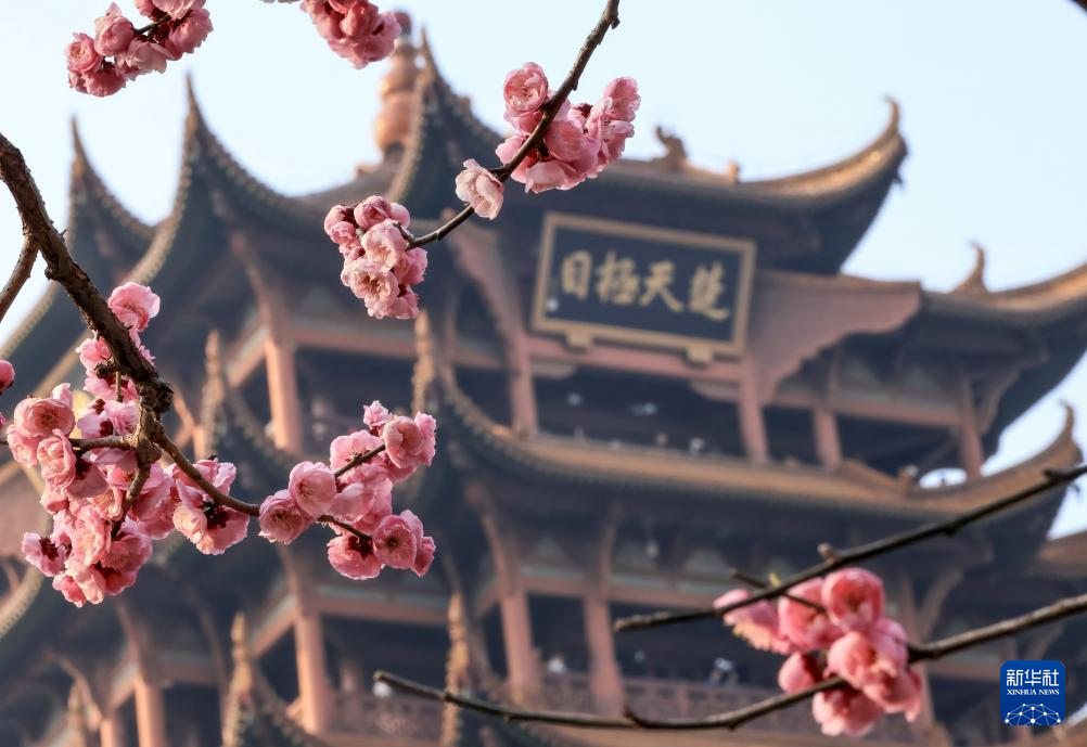 2月15日在湖北省武汉市黄鹤楼公园拍摄的梅花。