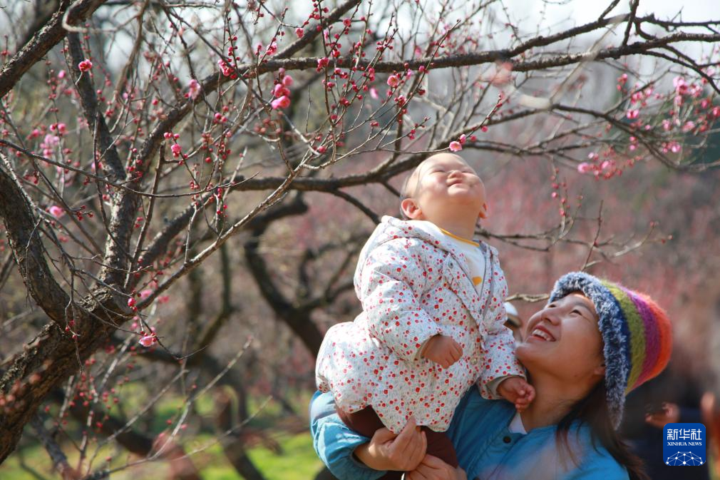 2月16日,游客在南京明孝陵景区梅花山赏花游玩。
