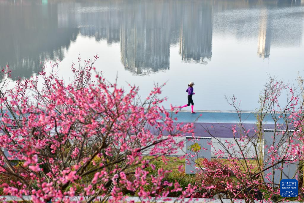 2月16日,健身爱好者在浙江省建德市一处绿道上跑步。