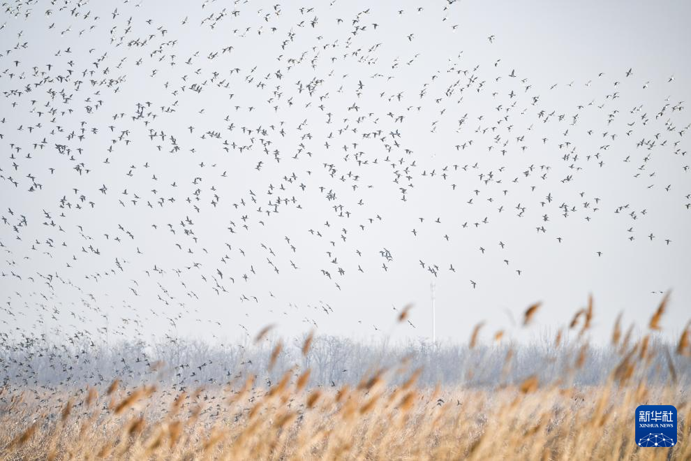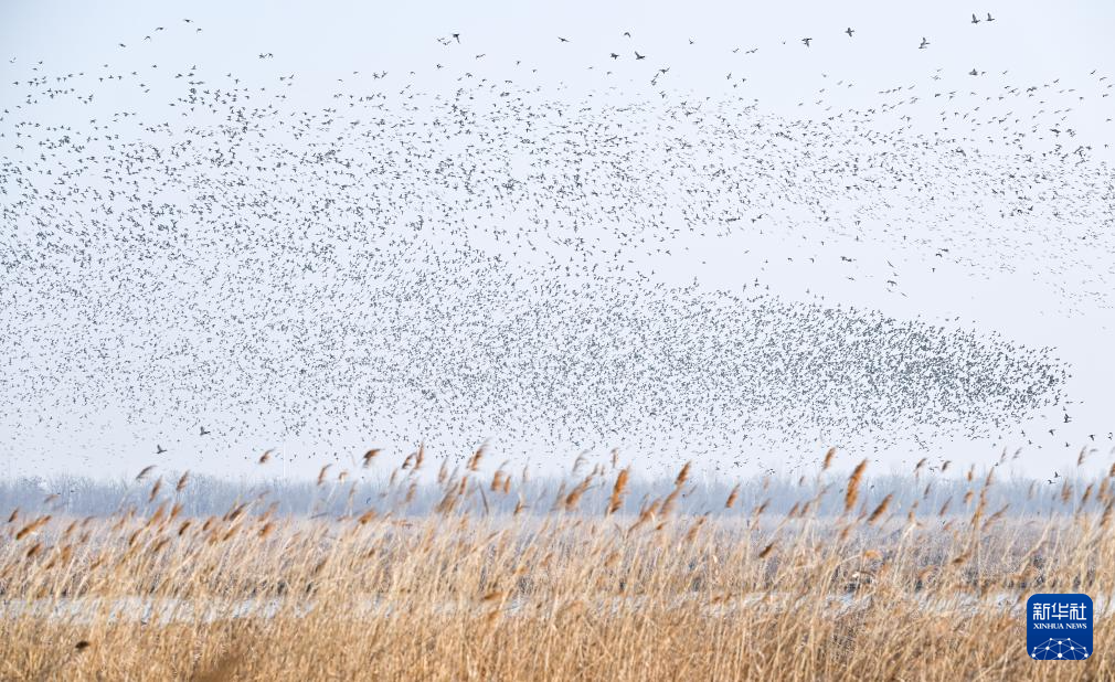 这是2月26日在天津七里海湿地自然保护区拍摄的“鸟浪”。