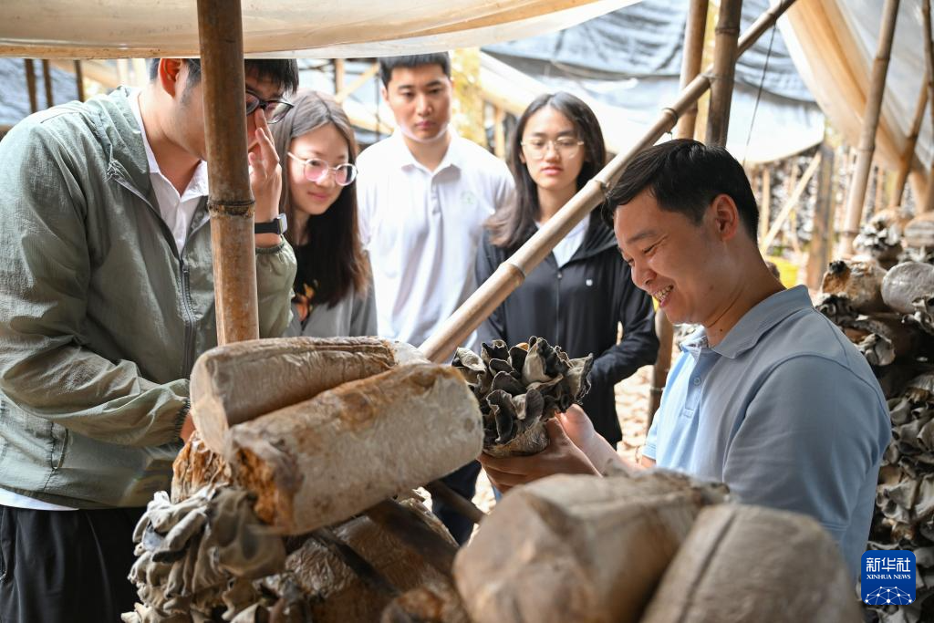 3月13日,海南儋州食用菌科技小院负责人罗灿(右一)在指导学生。