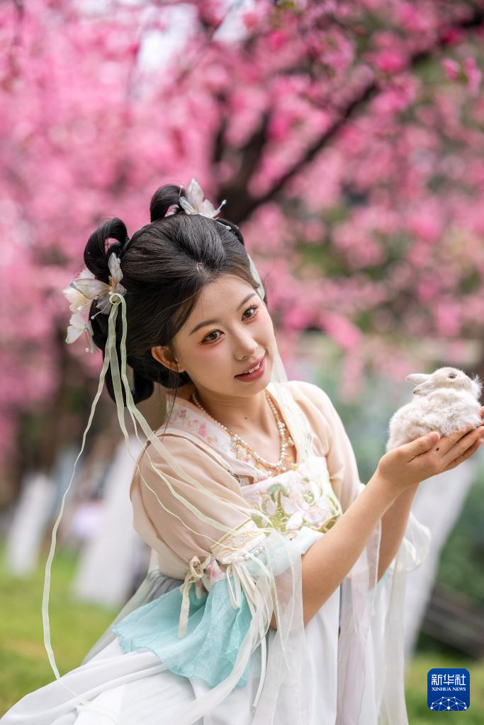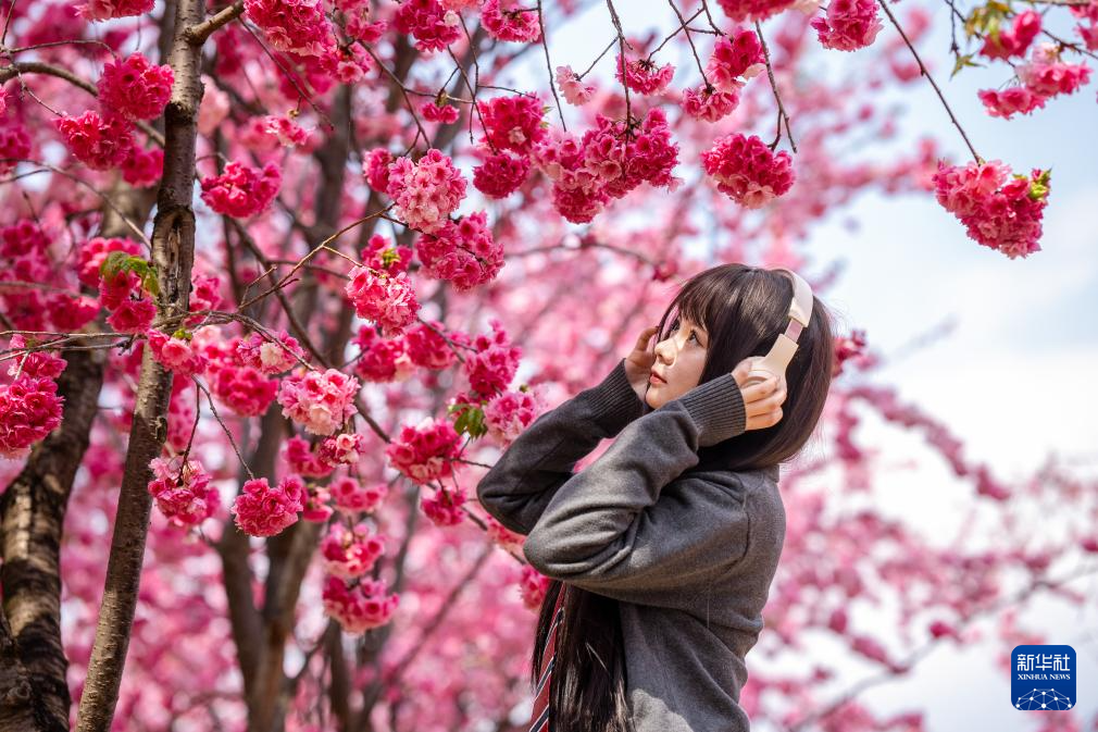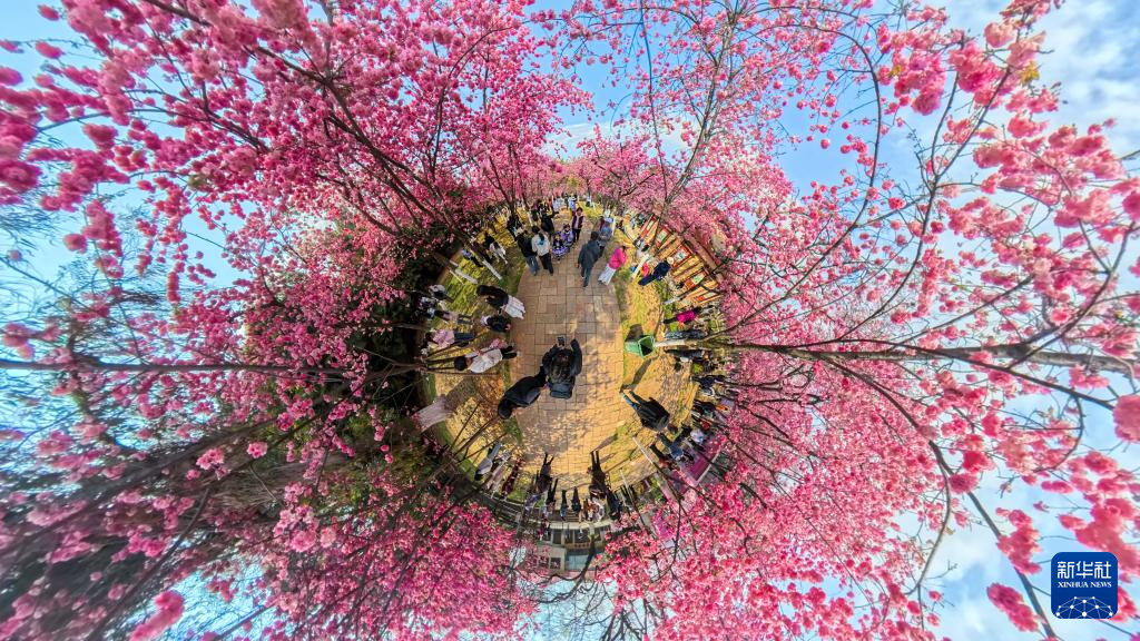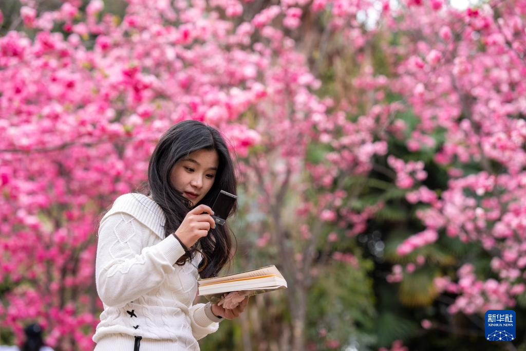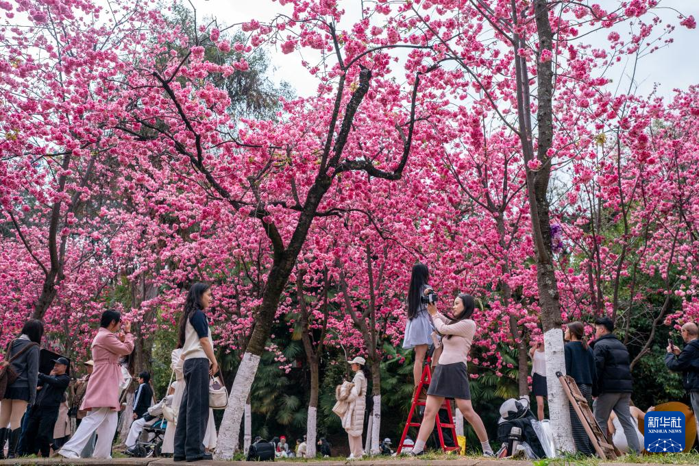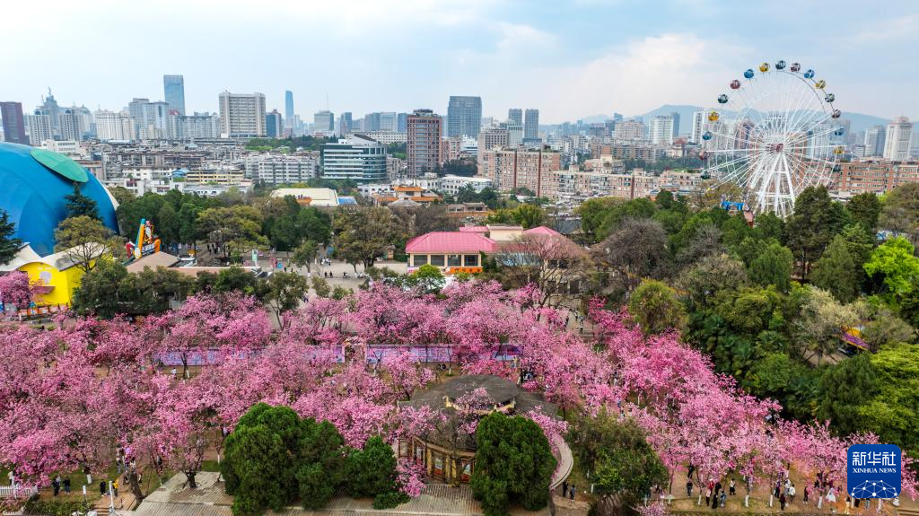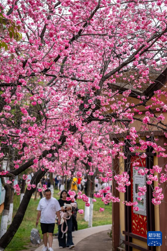 近日,云南昆明圆通山公园的樱花进入盛花期,吸引众多市民游客前来踏青赏花,感受春天的气息。