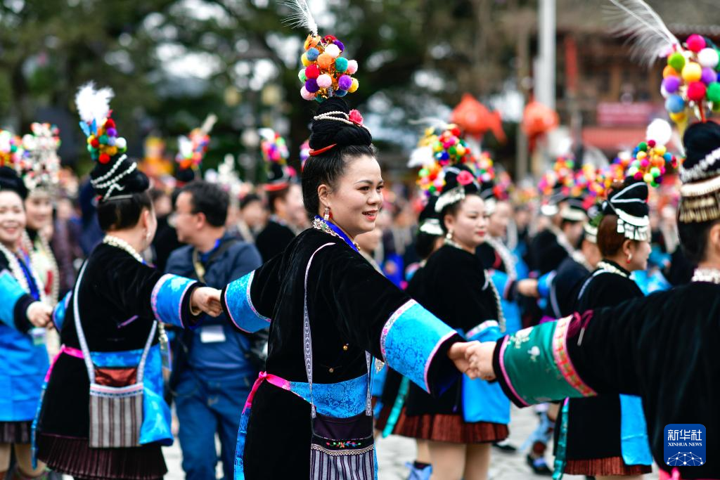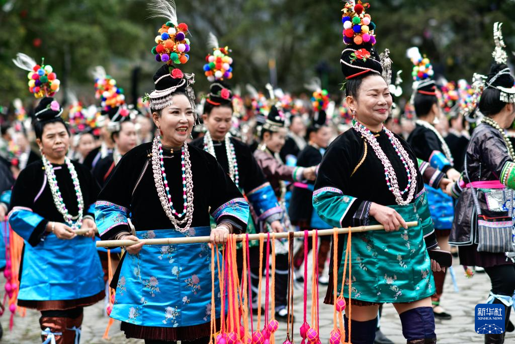 3月15日,当地群众在贵州省榕江县三宝侗寨参加“萨玛节”活动。