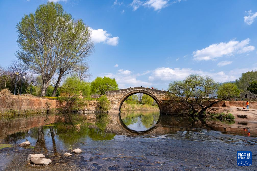 3月17日,游客在沙溪古镇玉津桥上游览观光。