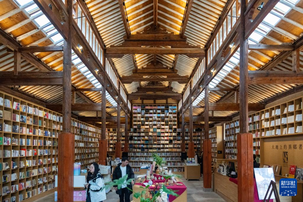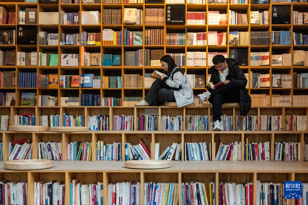 3月17日,游客在沙溪古镇先锋沙溪白族书局内看书。