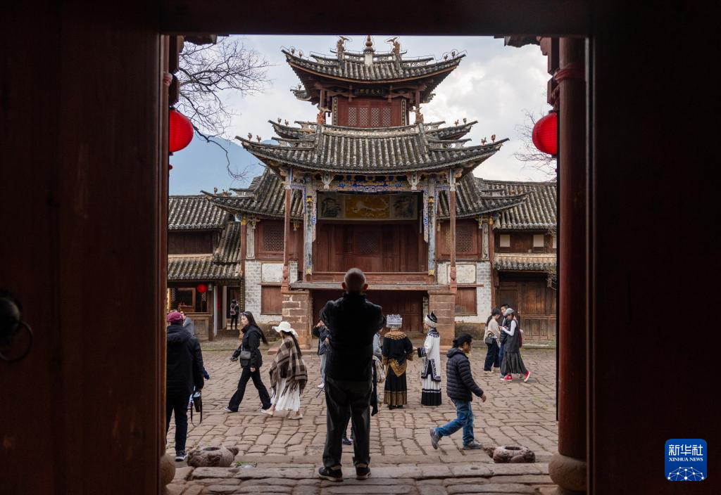 春日,云南省大理白族自治州剑川县的沙溪古镇迎来众多观光游客。古镇位于金沙江、澜沧江、怒江三江并流自然保护区东南部,历史上曾是滇藏茶马古道的重要驿站。古镇保存着传统村落风貌,包含大量明清时期的民居院落、古戏台等历史遗存。