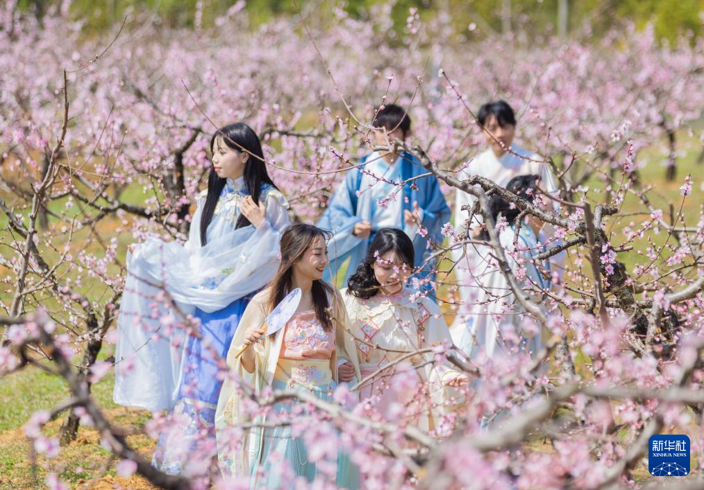 3月18日,游客在湖北省孝感市卓尔桃花驿小镇文化旅游节上赏花。