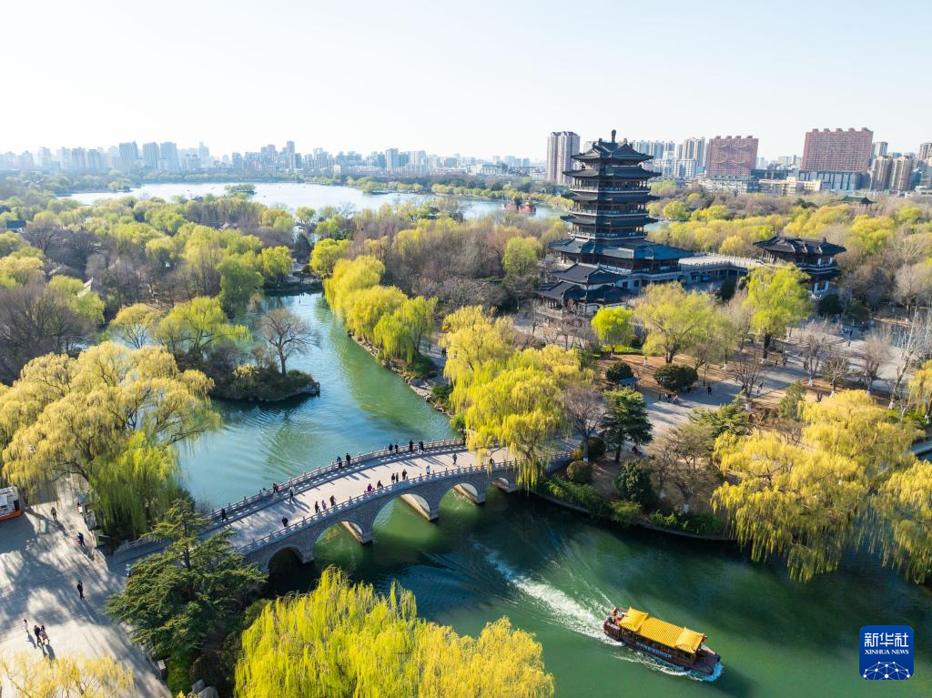 这是3月18日拍摄的山东省济南市大明湖景色(无人机照片)。