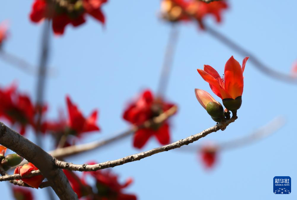 这是在广州市政府前拍摄的木棉花(3月19日摄)。