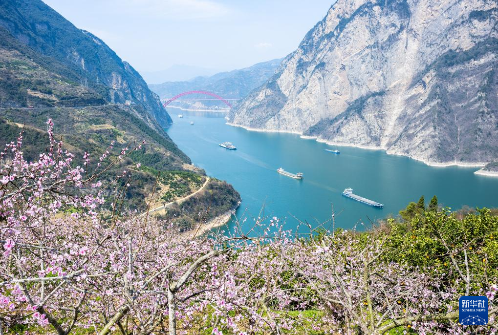 3月19日,船舶行驶在长江三峡西陵峡湖北省宜昌市秭归县兵书宝剑峡水域。
