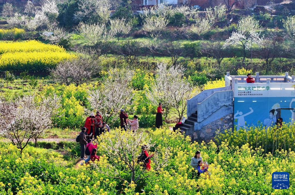 3月19日,游客在重庆市北碚区静观镇中华村山驿食集踏青赏花。