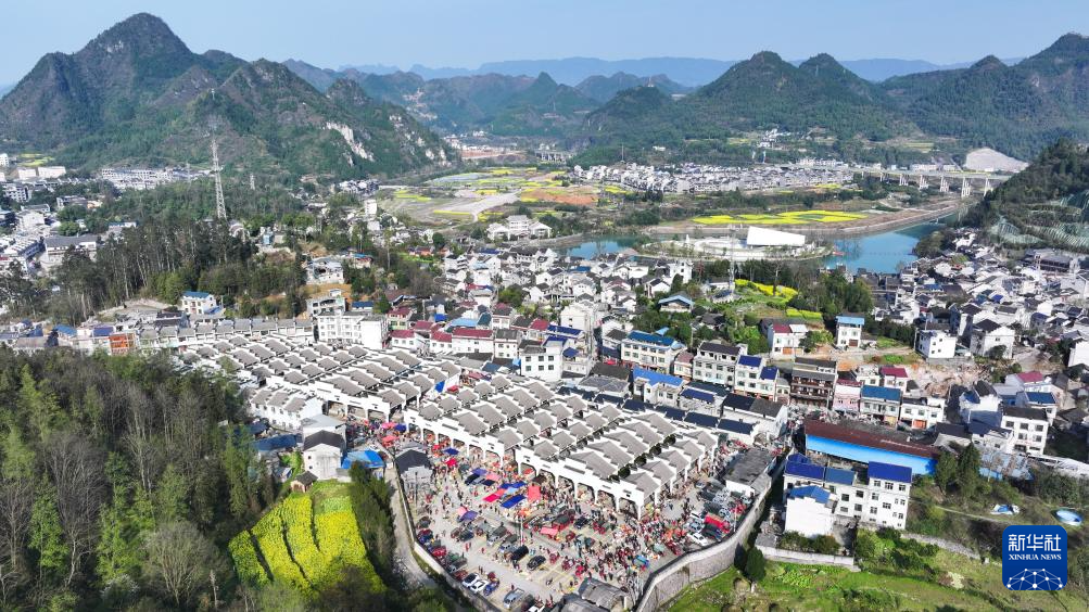 3月19日,边城集贸大市场车水马龙,人来人往(无人机照片)。