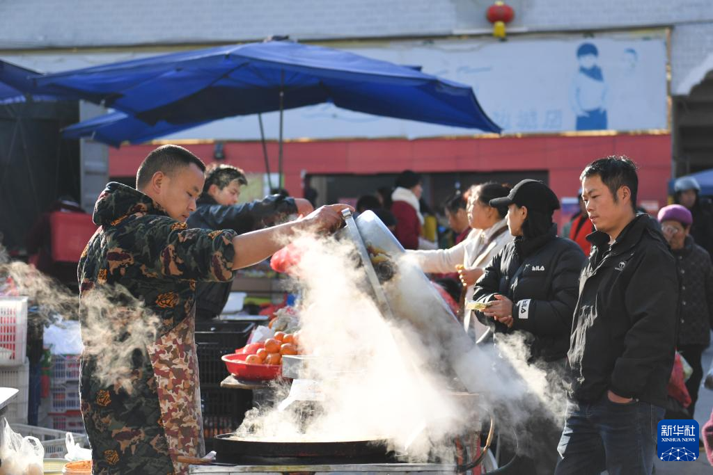 3月19日,当地居民在边城集贸大市场购买早餐。