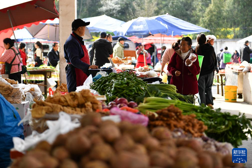 3月19日,当地居民在边城集贸大市场挑选各类蔬菜。