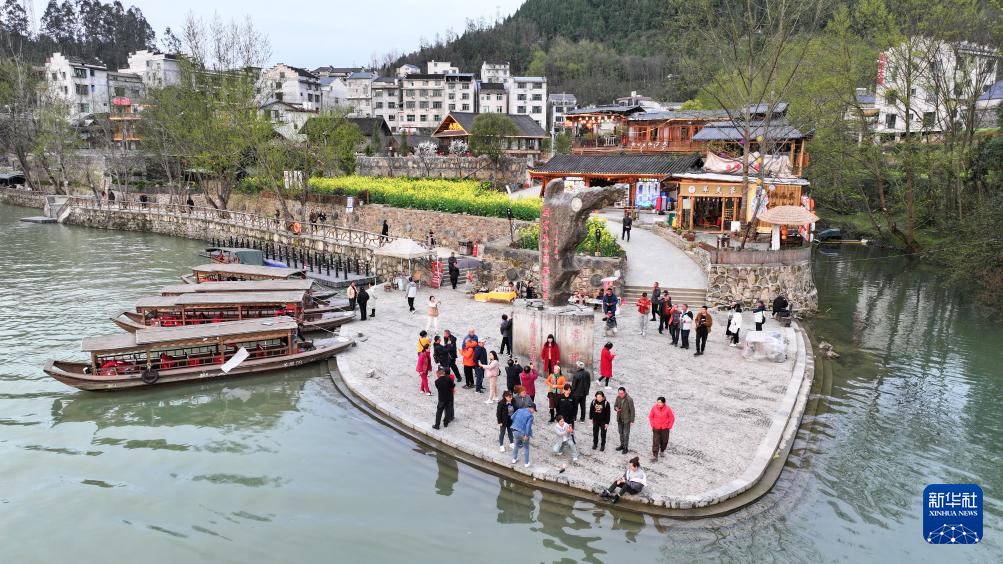3月18日,游客在清水江上泛舟游览(无人机照片)。