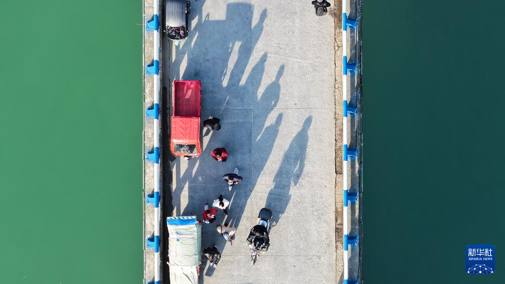 3月19日,当地居民通过茶洪大桥往返湘、渝、黔三地(无人机照片)。