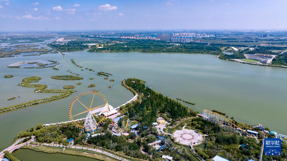 这是2024年8月28日拍摄的银川市阅海国家湿地公园(无人机照片)。