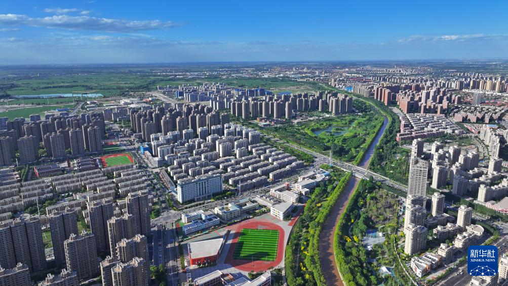 这是2024年8月22日从银川市徕龙公园附近拍摄的银川市景色(无人机照片)。