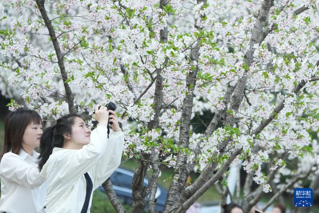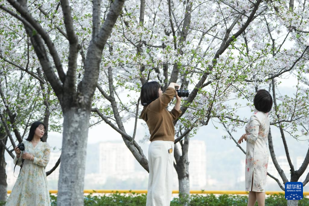 3月26日,人们在拍摄樱花。